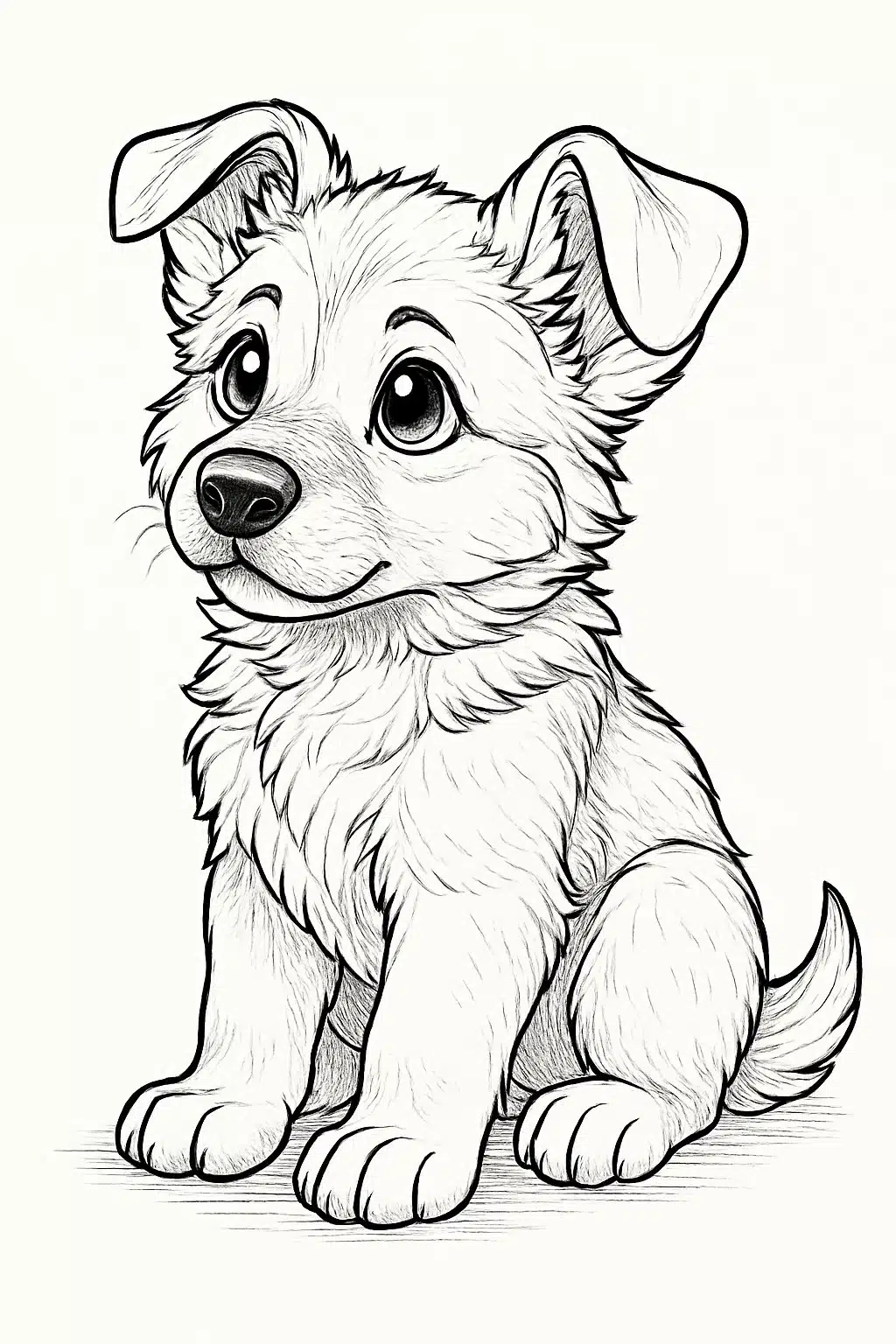 The puppy’s ears may be perked up, and its eyes focused, ready to explore or play. This image engages colorers by offering opportunities to highlight movement and expression in the design.