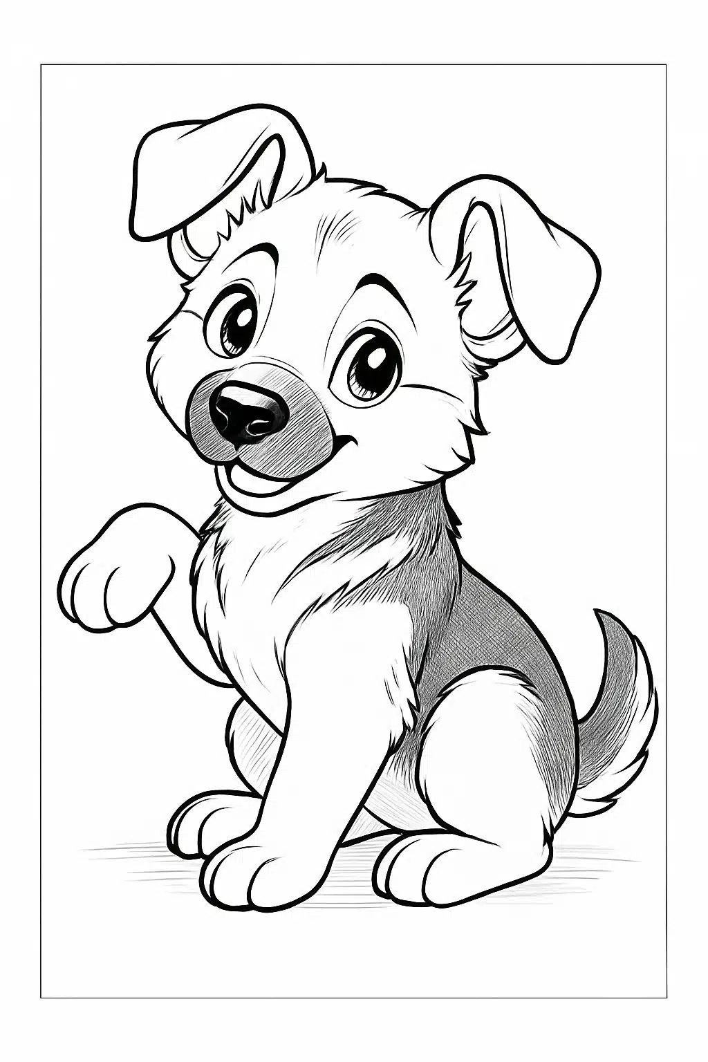 Details like the raised paw help highlight the puppy’s soft fur and expressive eyes. This page encourages smaller, careful coloring to bring out those features. It is a great choice for beginners and experienced colorers alike.