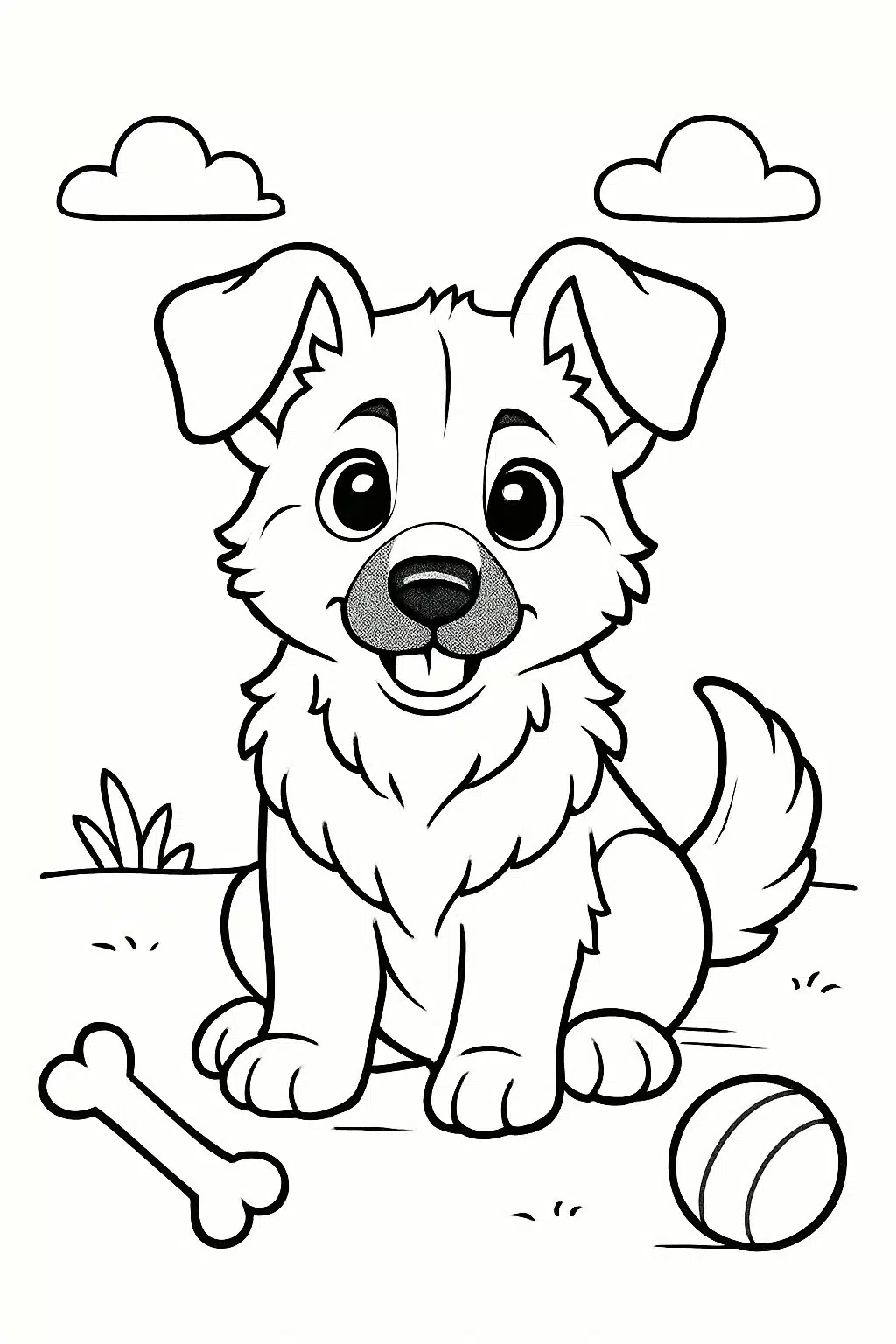 Coloring this image helps children practice fine motor skills and focus. The ball often uses bright colors like red or blue to add contrast. It encourages creativity while highlighting the puppy’s active nature.
