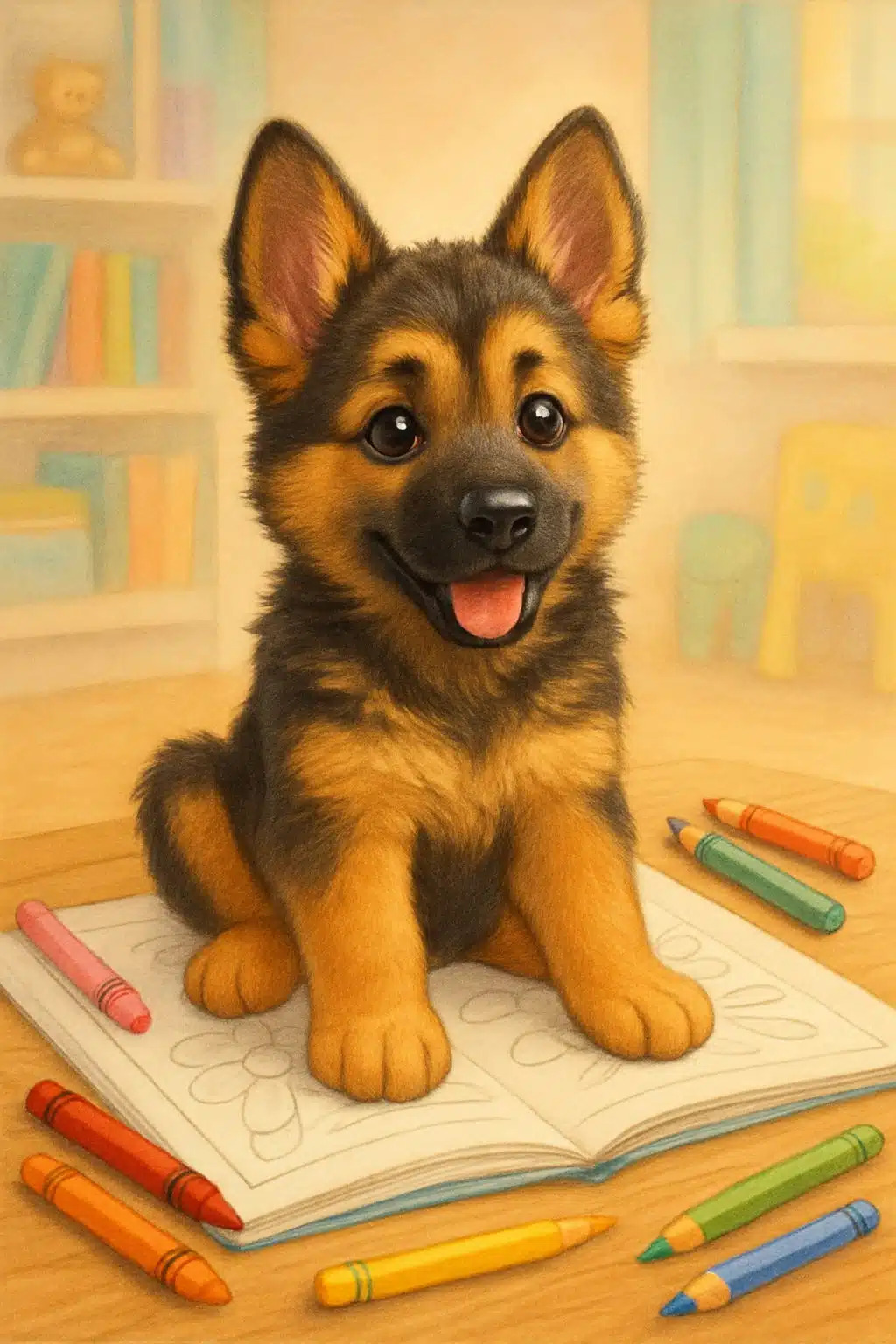 Coloring lets children choose colors and design how they want, which encourages creativity. When a child colors a German Shepherd puppy, they decide how the fur looks or the background scene. This helps develop their ability to make decisions about artistic choices.