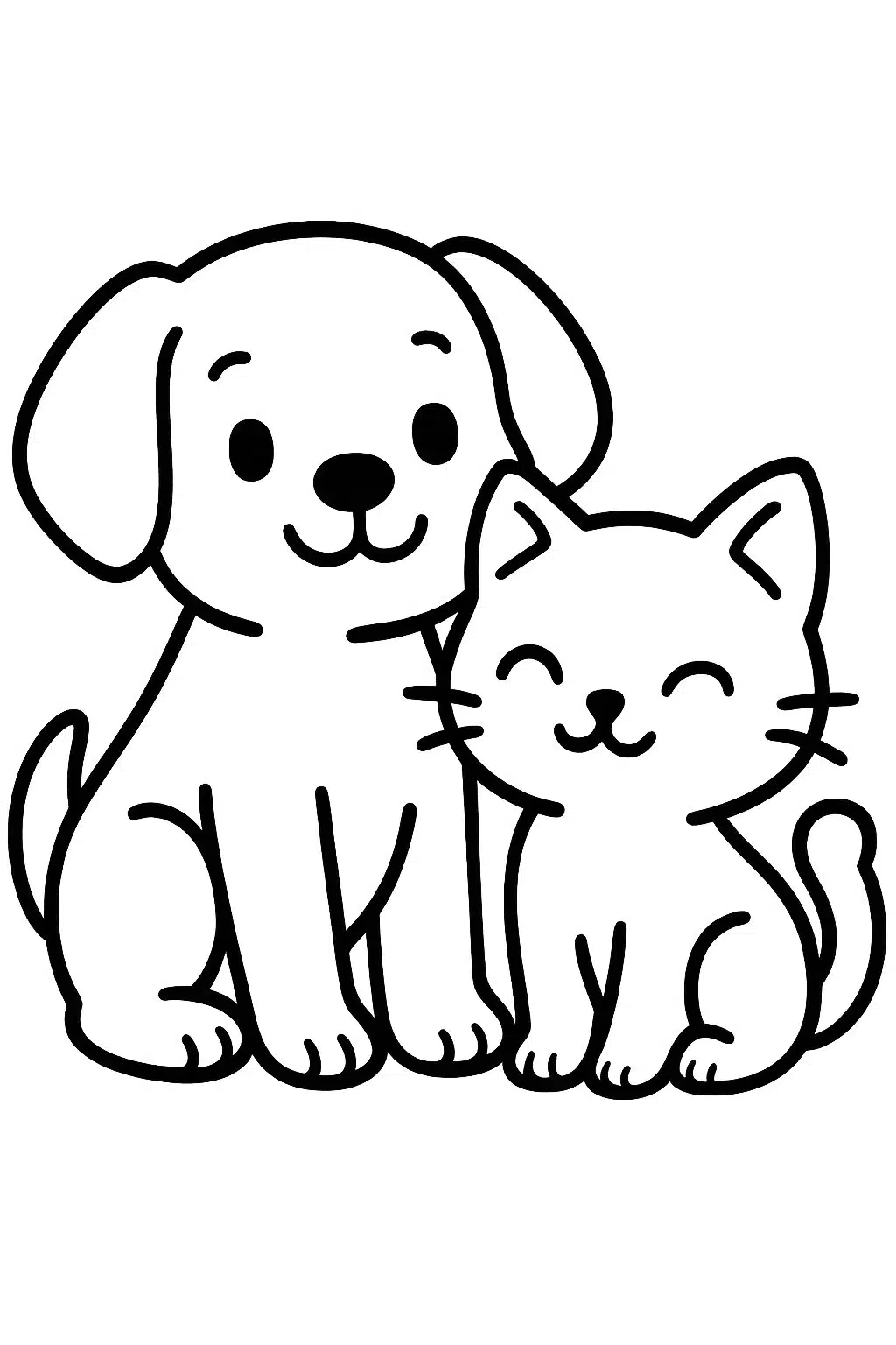 These coloring pages show puppies and kittens in playful and gentle scenes. Kids can enjoy adding color to pictures of pets napping, exploring gardens, or just sitting together. For more options, find free printable puppy and kitten coloring pages online.