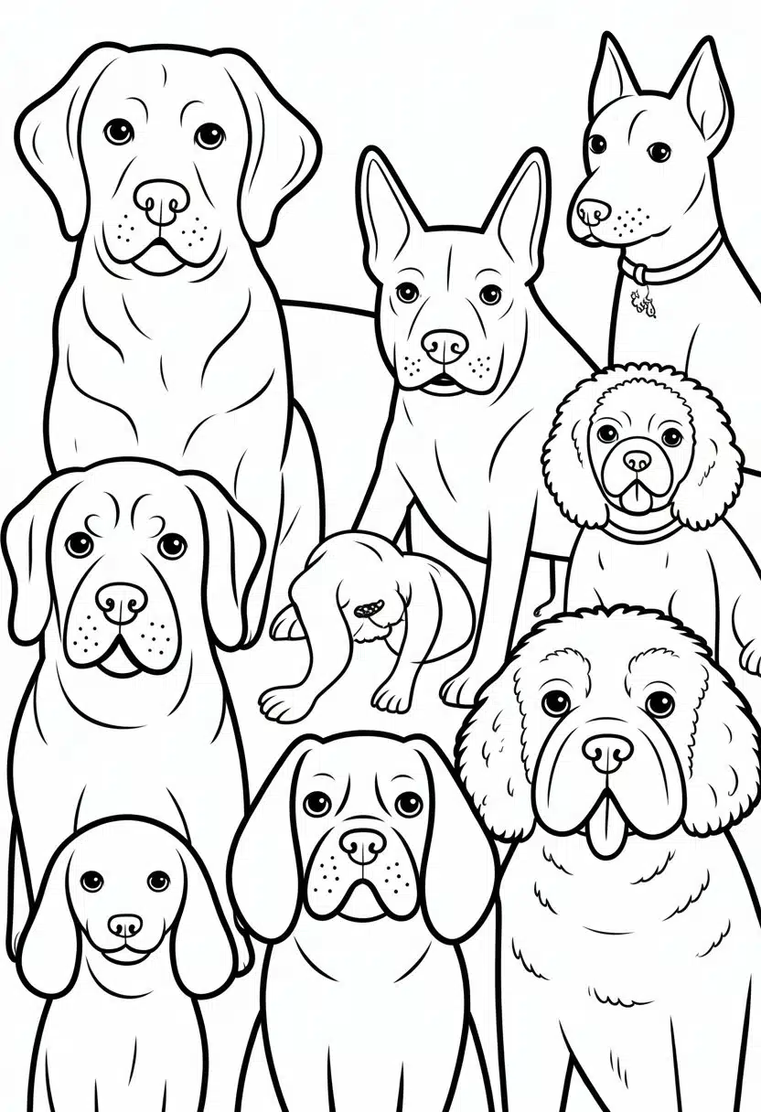 Each page is simple and clear, suitable for kids and adults. It helps users enjoy coloring while learning about different dog breeds.