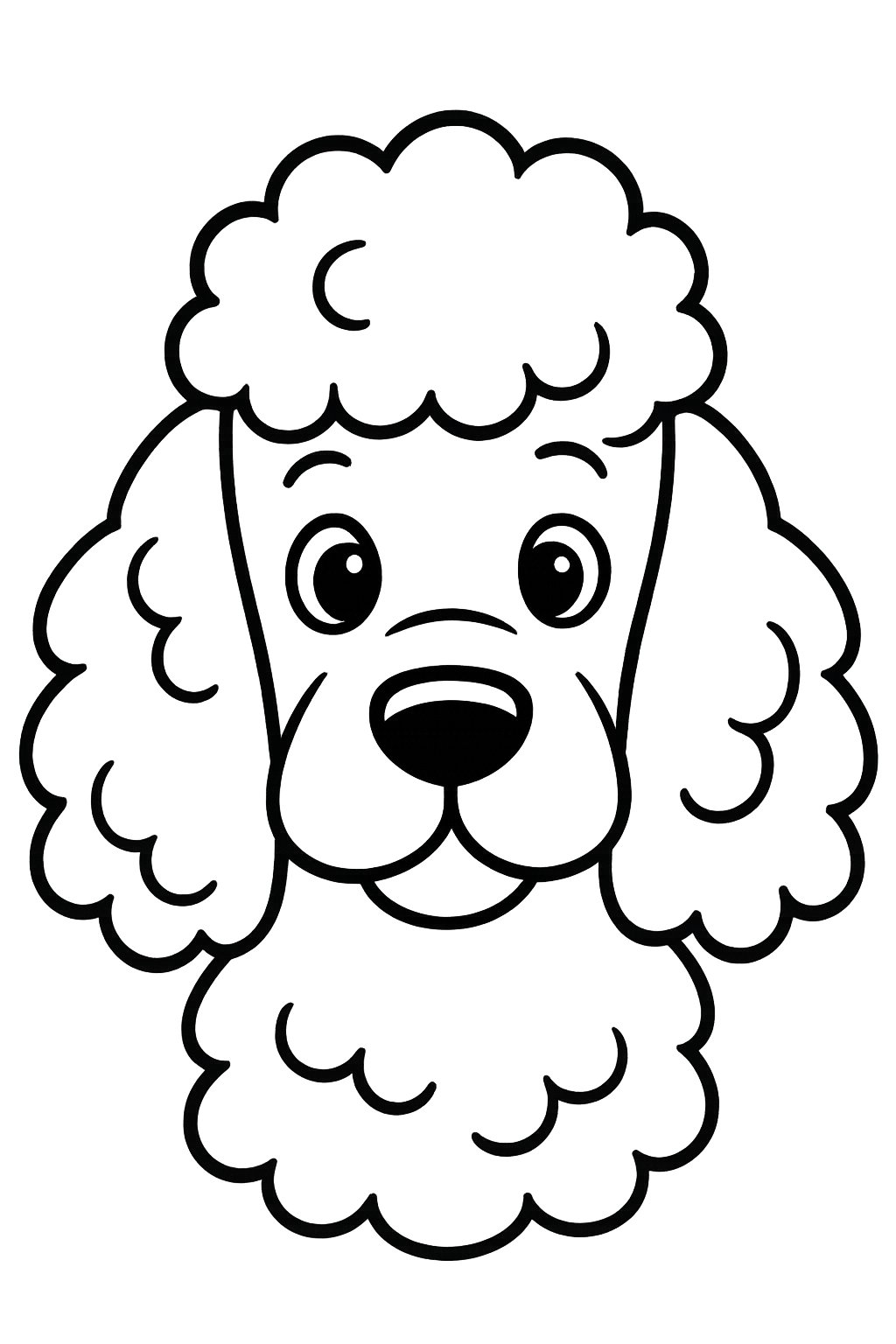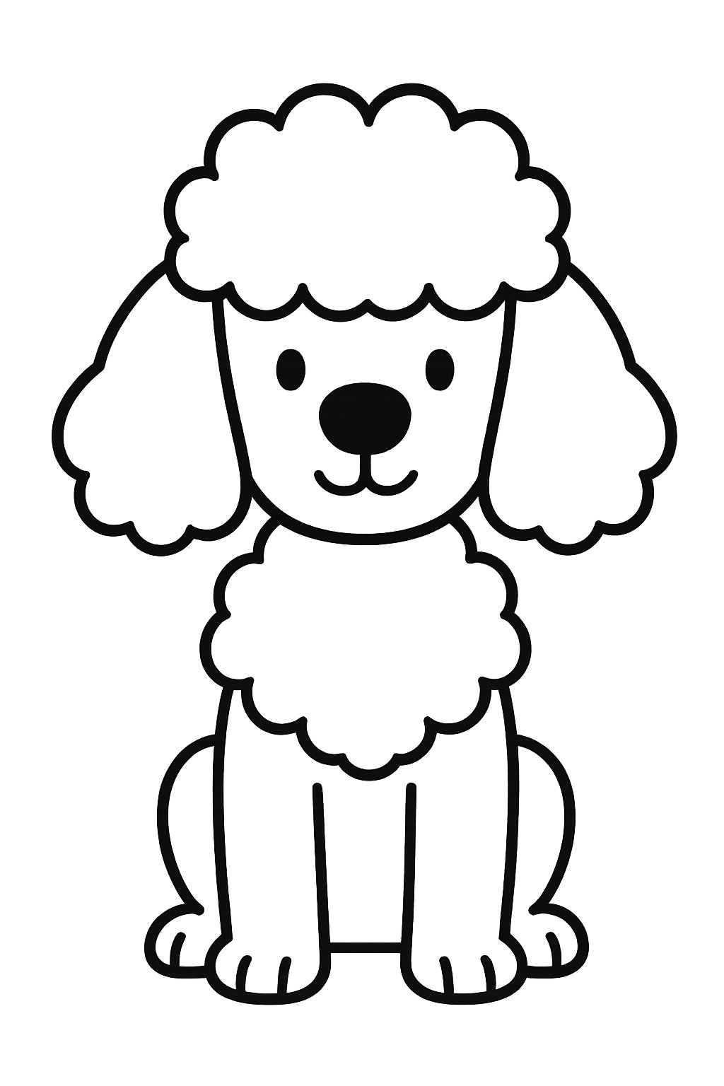 Poodles have distinct proportions that make their outline unique. The head and chest often appear as one large fluffy section, while the limbs and tail have softer, cloud-like shapes.